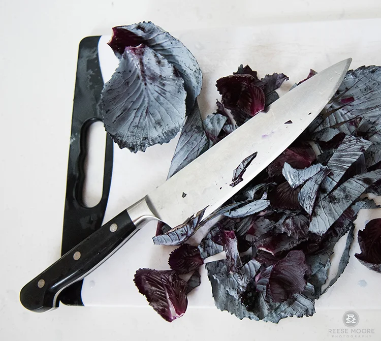 Not all ingredients will handle the same way, so I'll start with the coolest veggie on the list: purple cabbage. Cabbage is cool? Who knew!